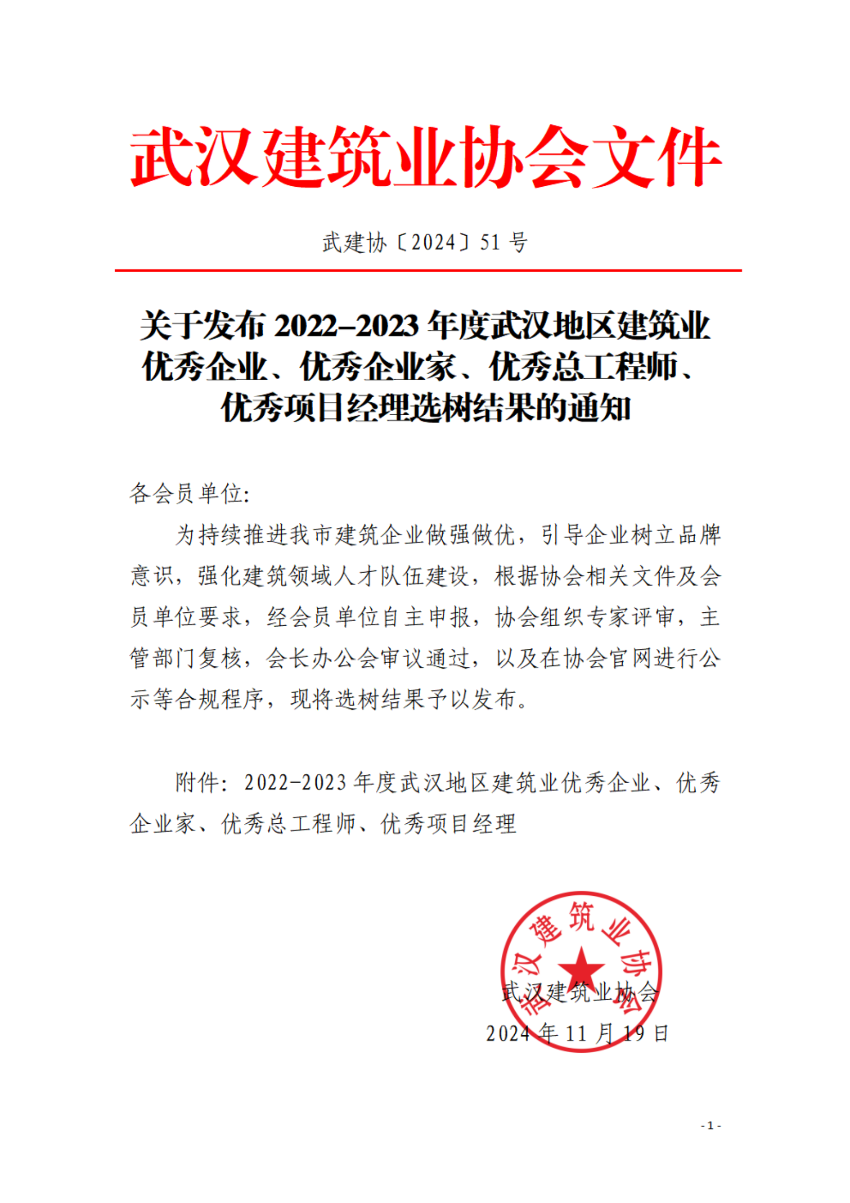 • 2024-11-22湖北省建工第五建設有限公司榮膺2023年度武漢市最具成長性民營建筑企業...[]